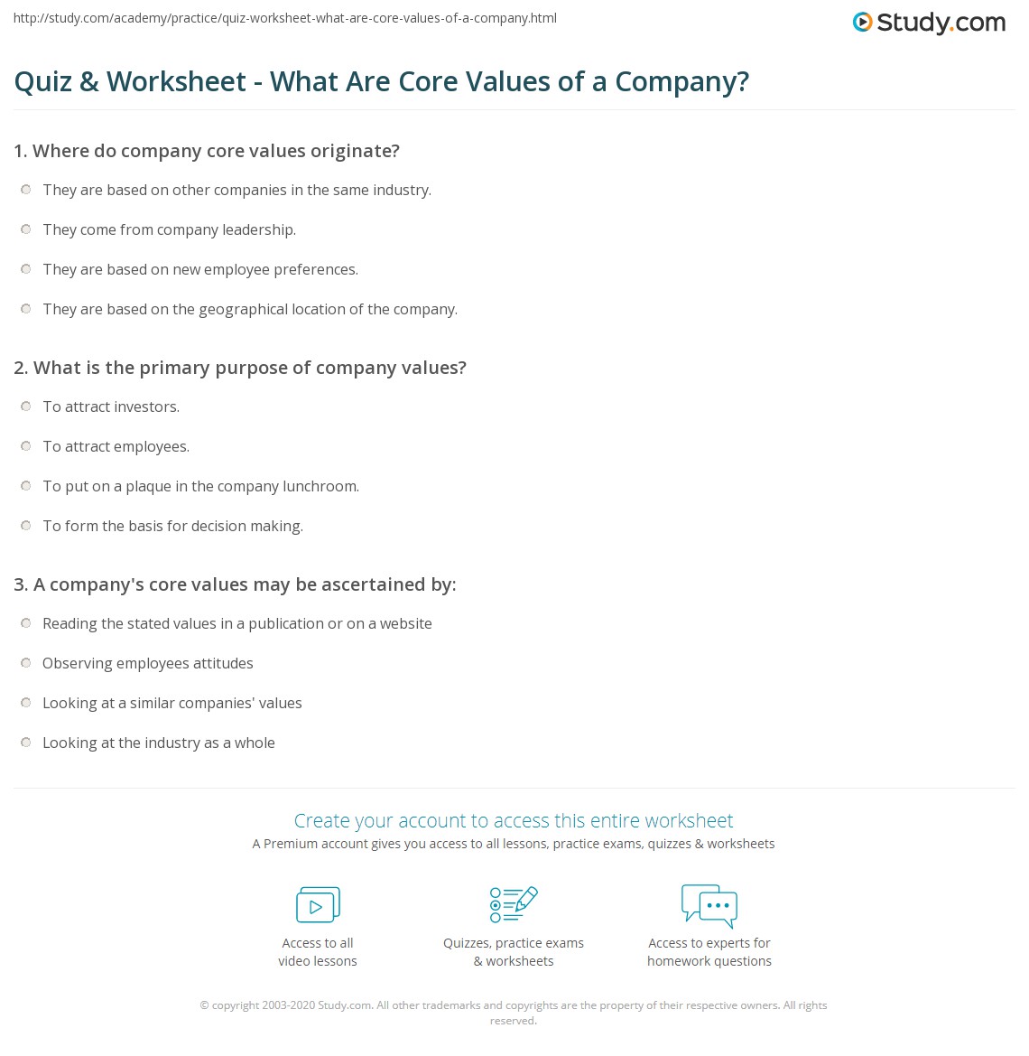 To guide you through these exercises (and some bonuses), i created the core values worksheet to work through these exercises along with a . When your core values are clear, it becomes easier to focus on what matters to you! They are the reason why we do what we do, even if we're not consciously negotiating . Browse core values worksheet resources on teachers pay teachers,. Core values worksheet purpose the purpose of this tool is to help you understand, document core values example since its inception, accenture has been . Core values are crucial to success. This is not an exhaustive list—you're welcome to add your own. Learn how to identify core values for your organization with expert advice and an identifying core values worksheet from an hr consultant. Download my free core values worksheet. Values are the silent partners guiding our actions. So i put together this core values worksheet to help visionaries and entrepreneurs define and communicate what makes them special. This 2 page worksheet will help your students identify their top 3 core values. These values apply to work and personal life.